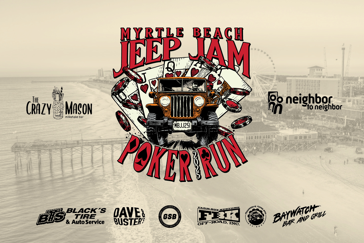 Get ready to roll into adventure during the Myrtle Beach Jeep Jam Poker Run on Thursday, October 30th, sponsored by The Crazy Mason Milkshake Bar! For just $35, you’ll embark on a thrilling journey through seven designated stops at local Myrtle Beach businesses, with each entry including a limited-edition Poker Run T-shirt. Over the course of six hours, participants will visit each stop to draw a card, building their poker hand along the way. The top three players with the best five-card hands will win a coveted Poker Run Prize Package, adding extra excitement to your Jeeping adventure.